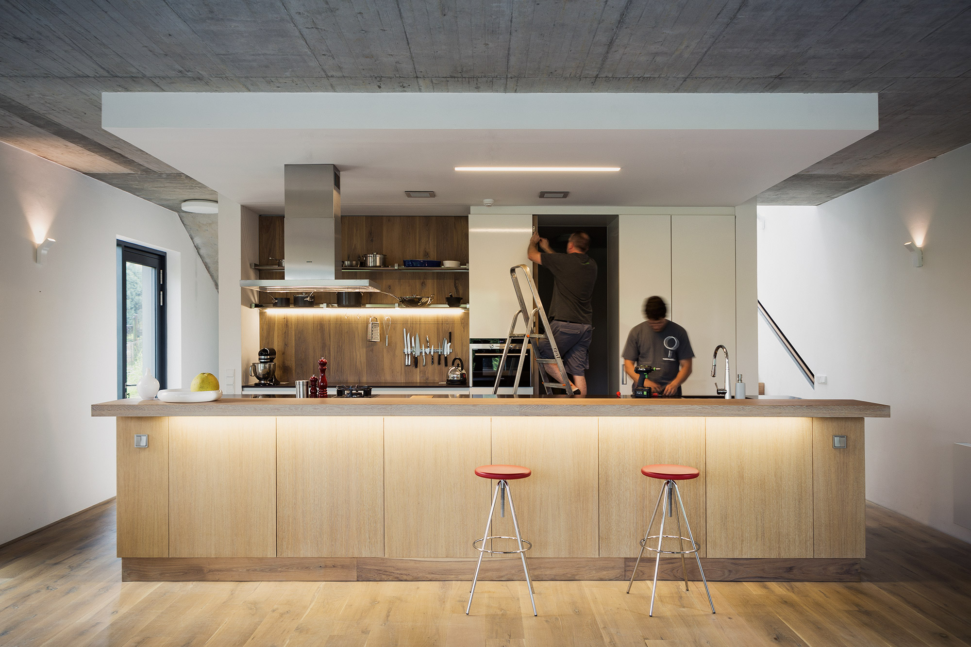 Montáž je závěrečnou, ale naprosto klíčovou částí každé zakázky. V LUGI chceme, aby instalace proběhla stejně precizně jako samotná výroba. Proto montáž provádějí ti samí truhláři, kteří nábytek vyráběli. Znají každý díl, každou spojku i každý detail návrhu. Díky tomu dokážou vše sestavit s maximální přesností a jistotou, že výsledný interiér bude odpovídat autorově představě.