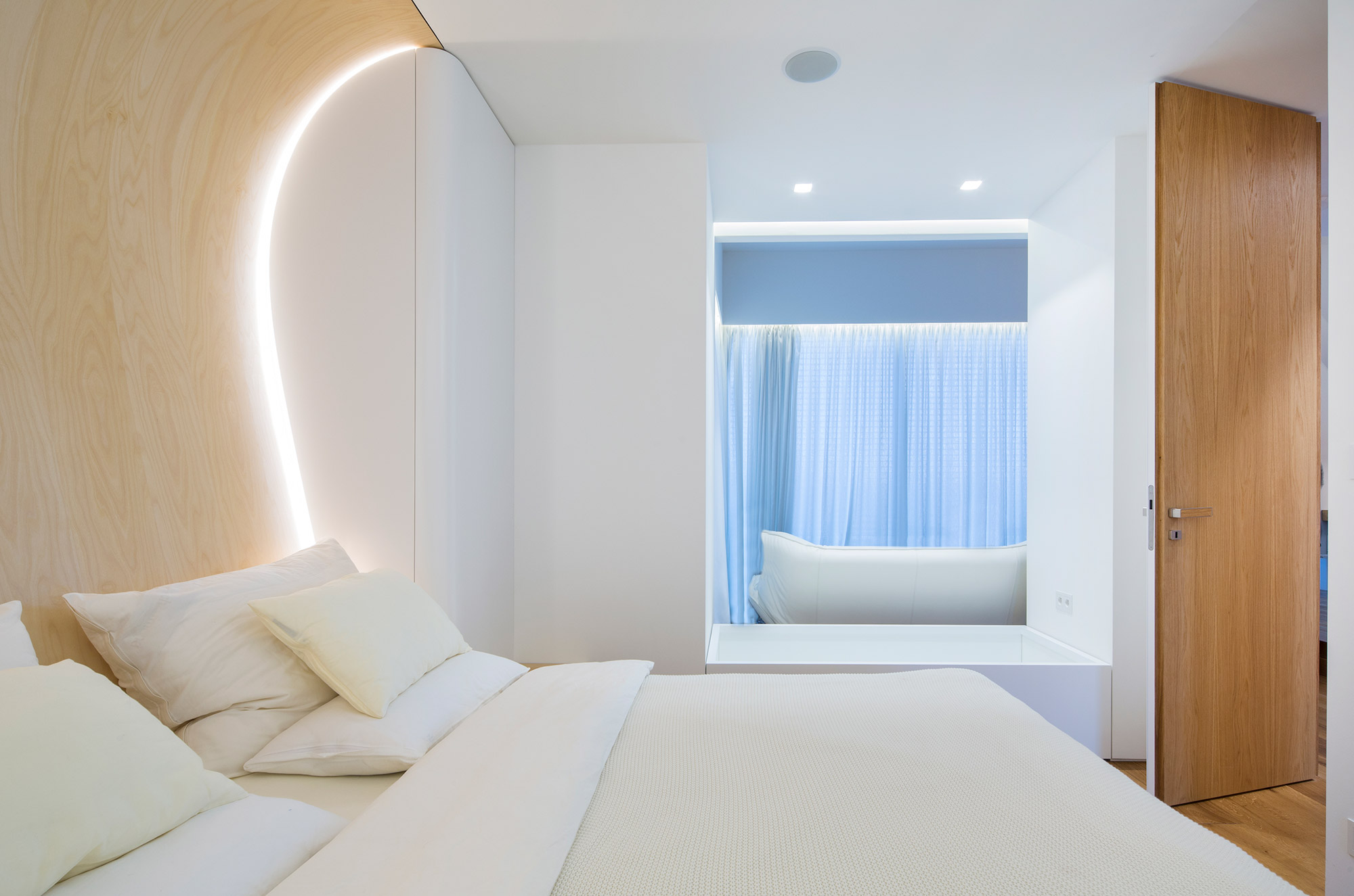 Interiér s rozvlněnou stěnou