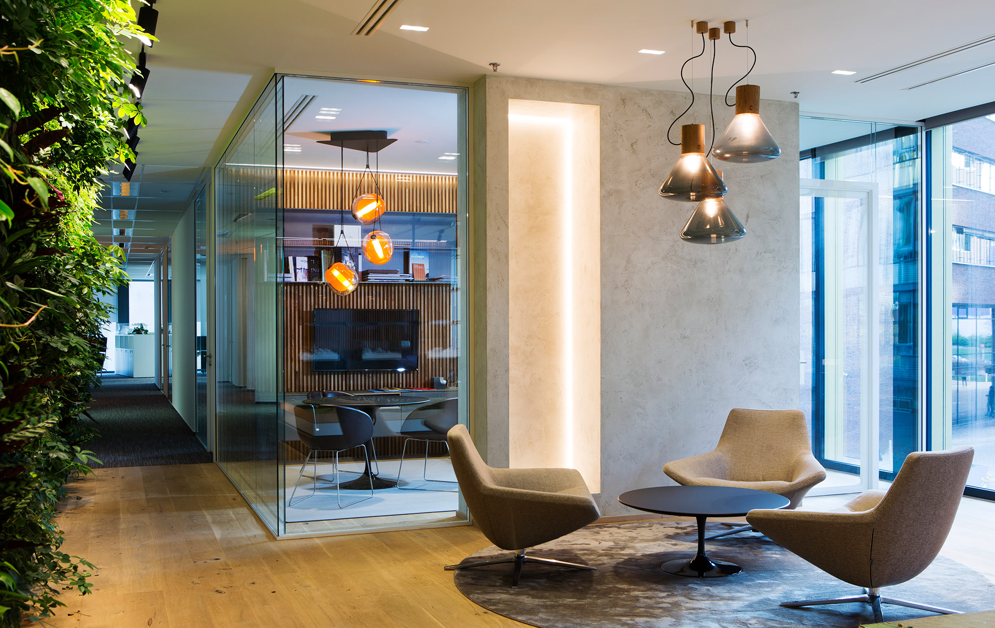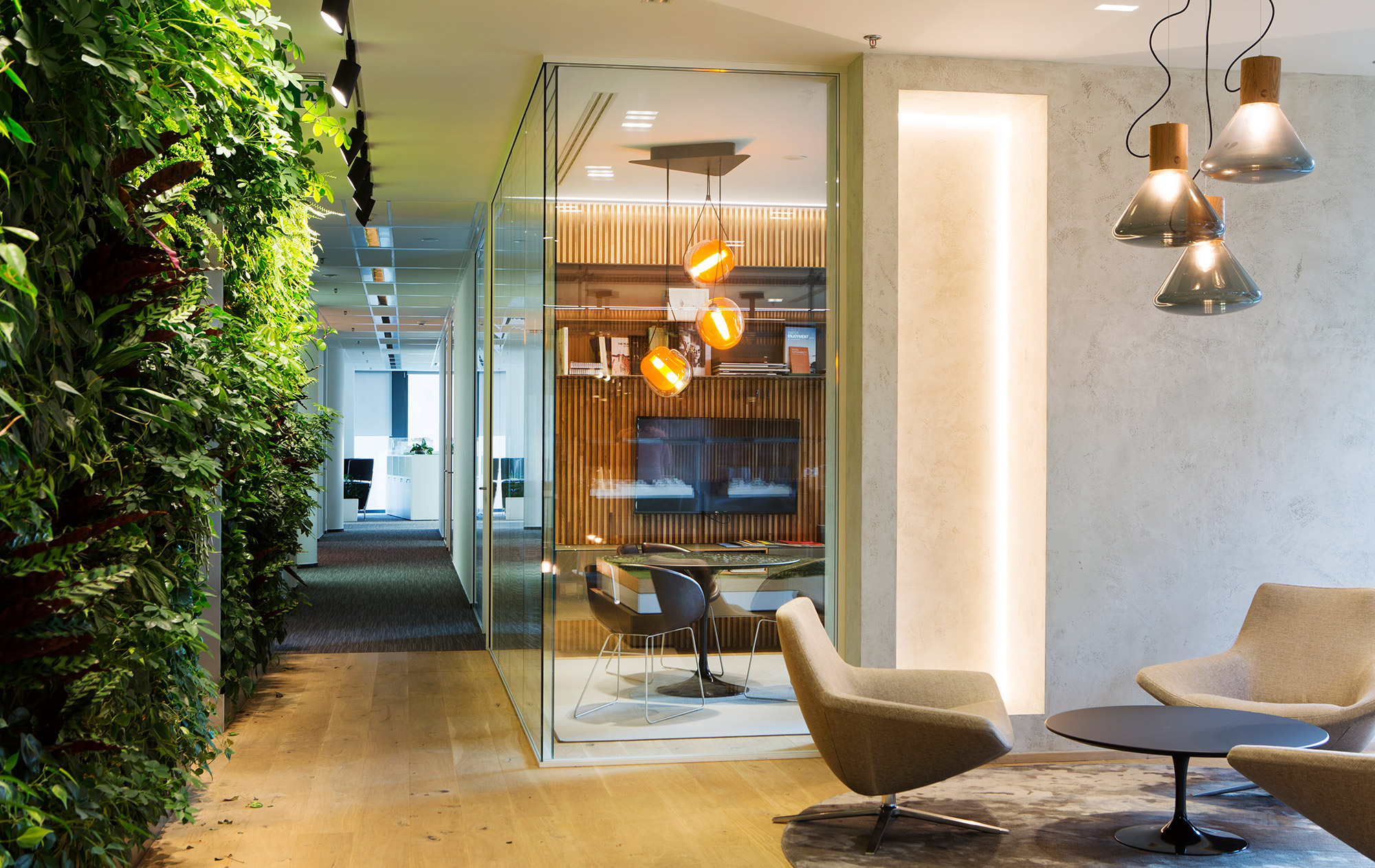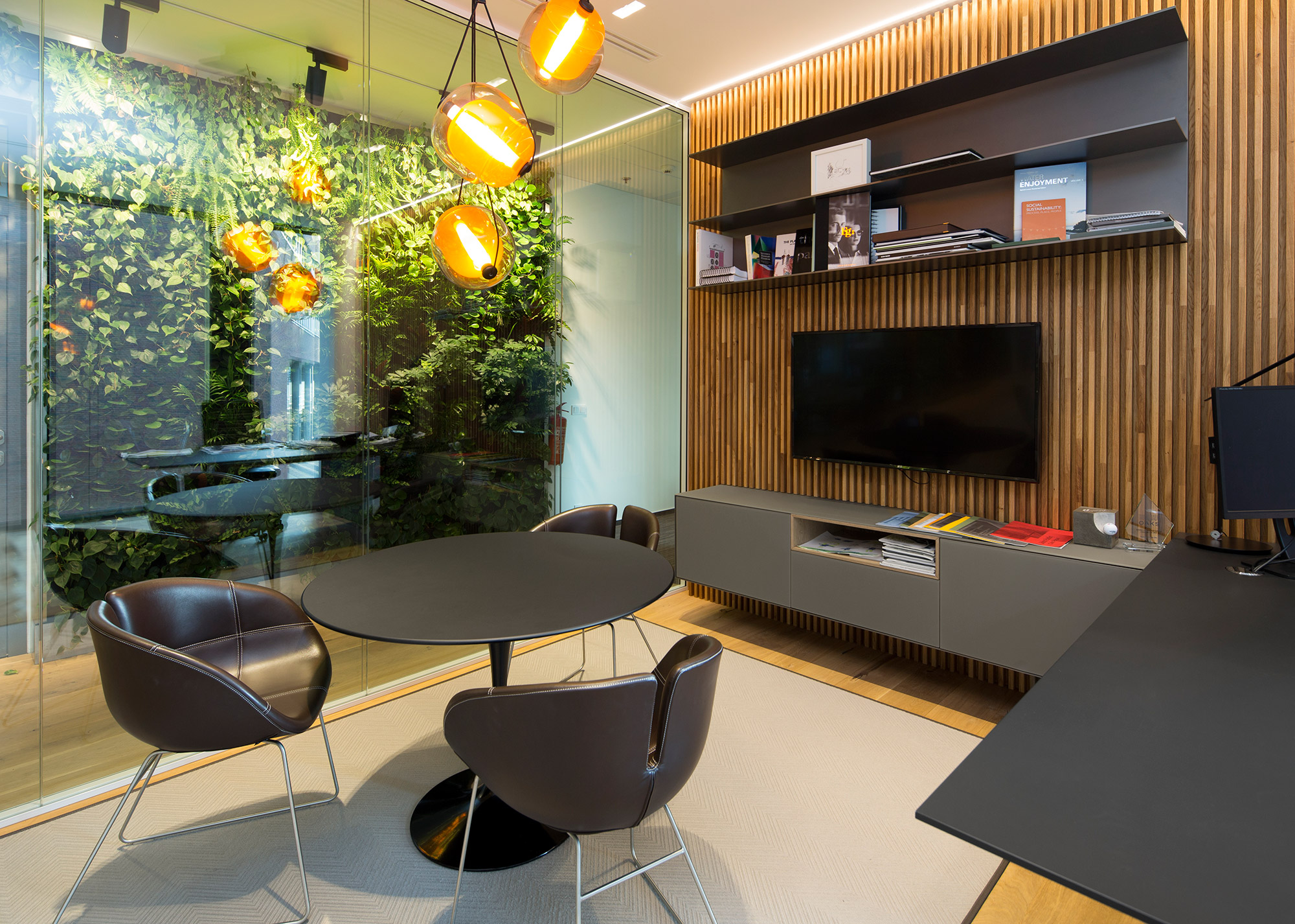 Kancelář s živou zelenou stěnou