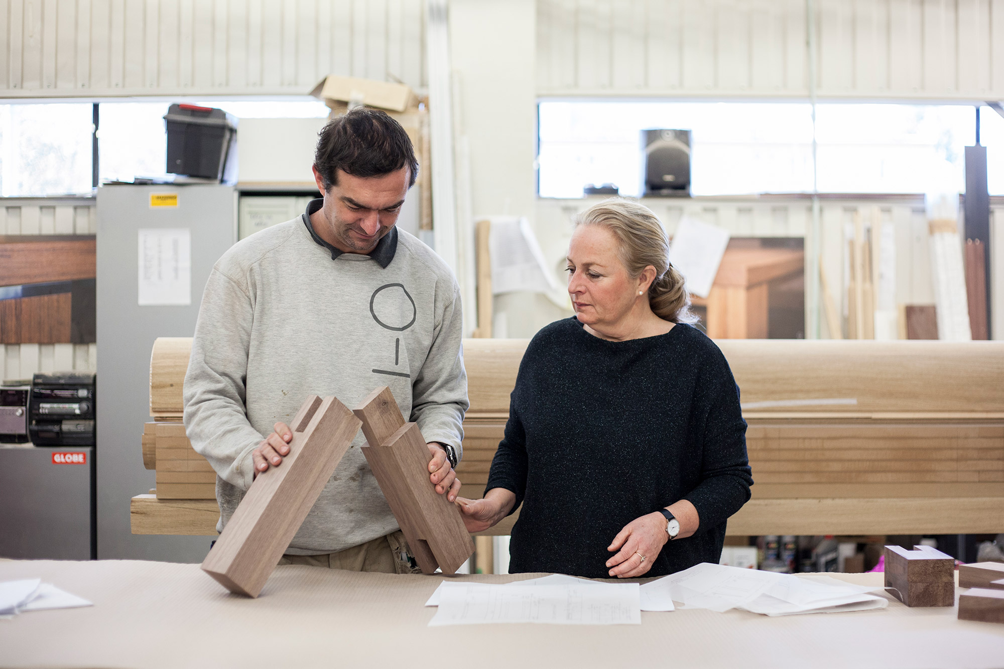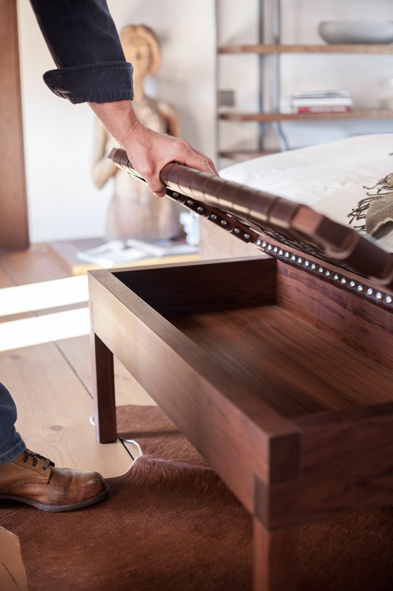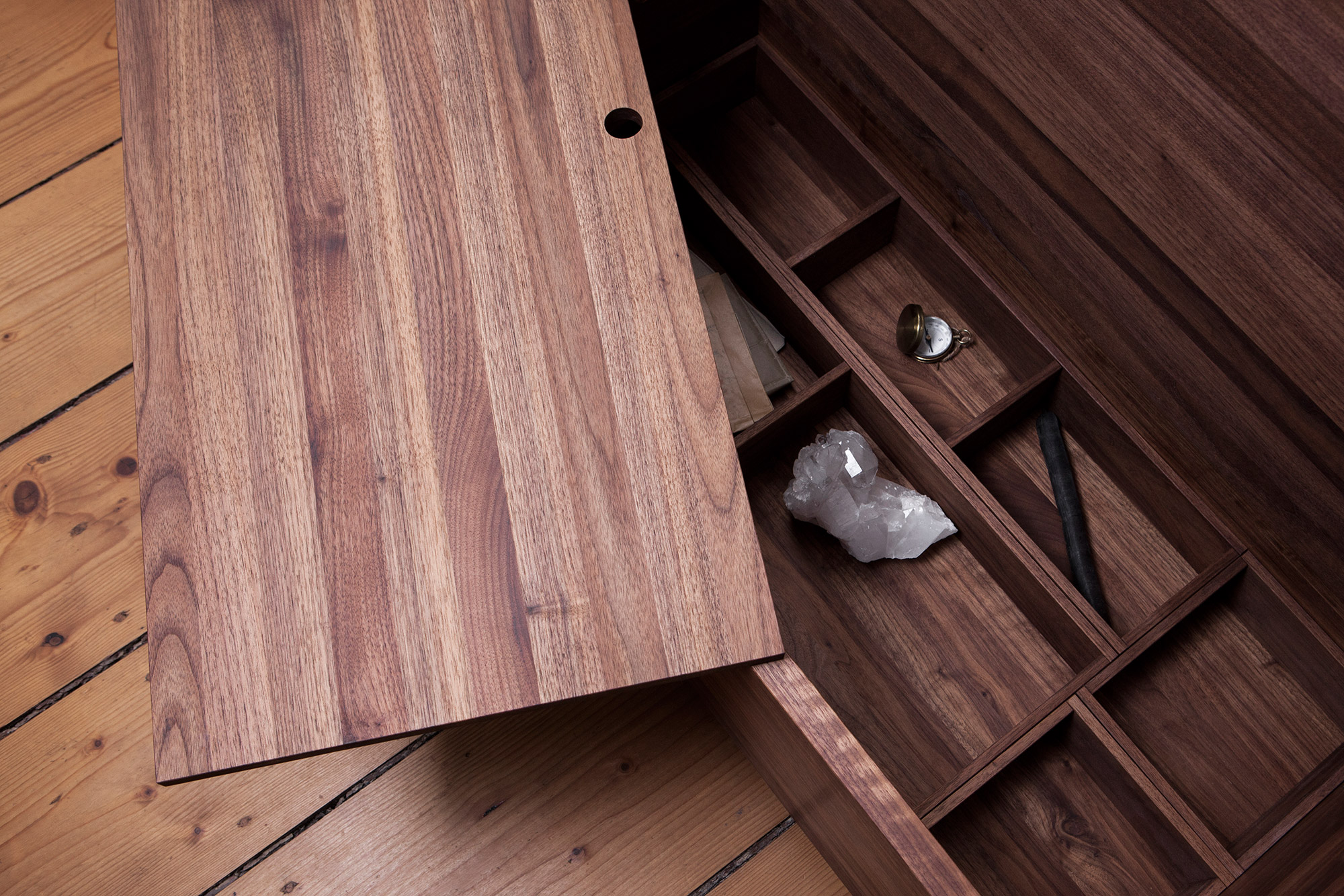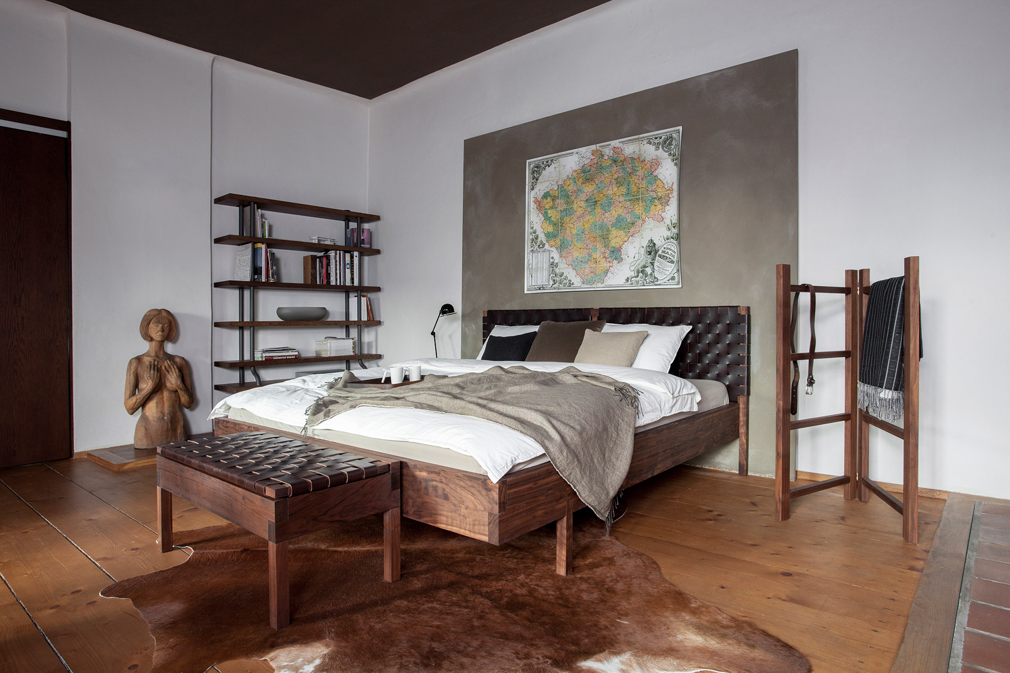 Kolekce nábytku „Back to roots“ (Zpět ke kořenům) je vytvořena pouze ze dvou materiálů, z masivního amerického ořechu a pravé hovězí kůže. Návrh je postaven na co možná nejkvalitnějších materiálech a přesné ruční práci. Charakteristickým prvkem u všech produktů jsou čepové spoje v různých poměrech, počtech a velikostech. Postel, lavice a křesílko je navíc doplněno o náročný čalounický prvek z ručně proplétané hovězí kůže.