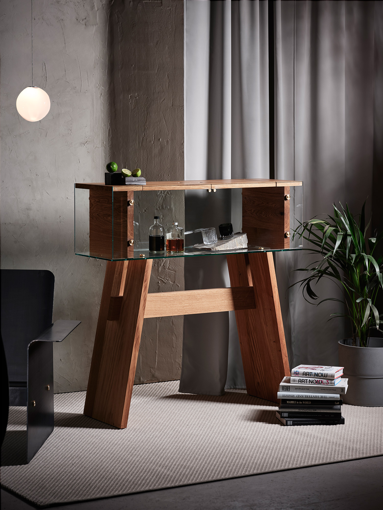 Limitovaná kolekce zeitgeist.limited je inspirována nocí a rock’n’rolllem. Výsledkem jsou výrobky s vyladěnými detaily vyrobené z prvotřídních materiálů zkušenými řemeslníky. SOLID BAR z limitované edice pro zeitgeist.limited vznikl pouze ve dvanácti kusech. Do popředí je postavena surovost materiálů: masivního dubu, kaleného skla a mosazných konstrukčních prvků. Dubové dřevo je povrchově ošetřeno přírodním včelím voskem, mosaz je bez nátěru, takže bude přirozeně stárnout.